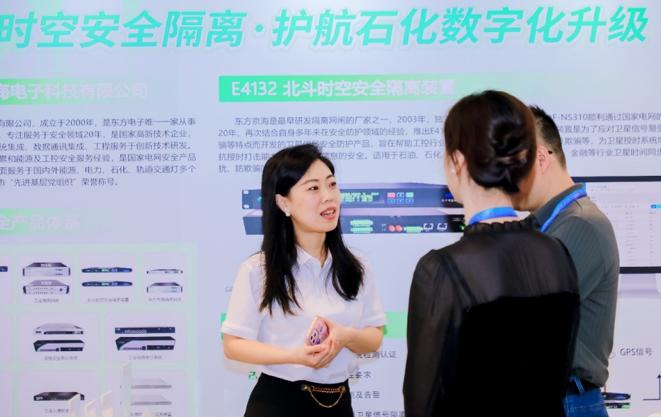 本次活動主題為“石油石化網(wǎng)絡(luò)安全,新時代、新征程”,由中國石油學(xué)會北斗導(dǎo)航與通信專業(yè)委員會、中石油、國家管網(wǎng)等單位聯(lián)合舉辦。作為現(xiàn)場為數(shù)不多的針對北斗時空通訊安全與石油石化工控安全融合的參展商,東方京海憑借“北斗時空安全隔離”創(chuàng)新技術(shù)及豐富的國產(chǎn)化工控安全產(chǎn)品、成熟的石油石化網(wǎng)絡(luò)安全綜合解決方案,吸引了眾多與會專家學(xué)者和石化領(lǐng)導(dǎo)蒞臨東方京海展臺咨詢與交流,在現(xiàn)場與某海油客戶達成基于海上北斗時空隔離的研究合作意向。