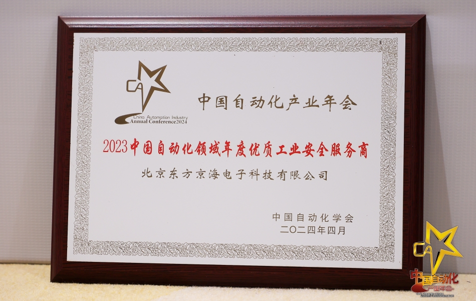 2024年4月11日中國(guó)自動(dòng)化產(chǎn)業(yè)年會(huì)暨第十九屆中國(guó)自動(dòng)化產(chǎn)業(yè)世紀(jì)行活動(dòng)(CAIAC 2024)在北京隆重舉行。本次活動(dòng),京海公司再次榮獲“2023中國(guó)自動(dòng)化領(lǐng)域年度優(yōu)質(zhì)工業(yè)安全服務(wù)商”,這也是公司連續(xù)第三次榮獲此項(xiàng)殊榮,充分體現(xiàn)出了行業(yè)專家對(duì)京海公司產(chǎn)品及服務(wù)能力的認(rèn)可及肯定。