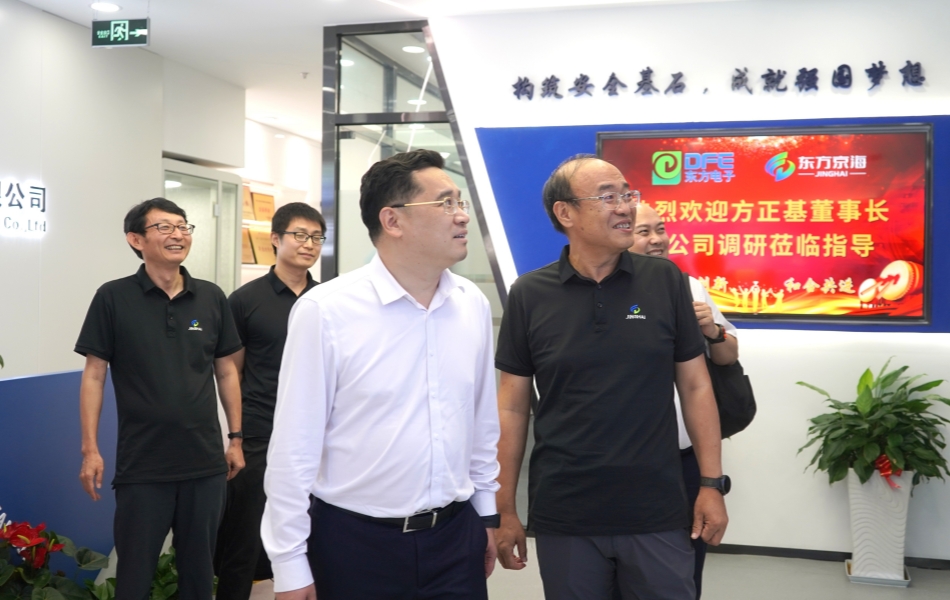 方正基副董事長一行在京海公司總經(jīng)理崔曉東等陪同下參觀了公司新辦公區(qū)、黨建文化墻、榮譽資質(zhì)墻等,并聽取了公司黨建活動、市場拓展、產(chǎn)品研發(fā)及取得資質(zhì)榮譽。